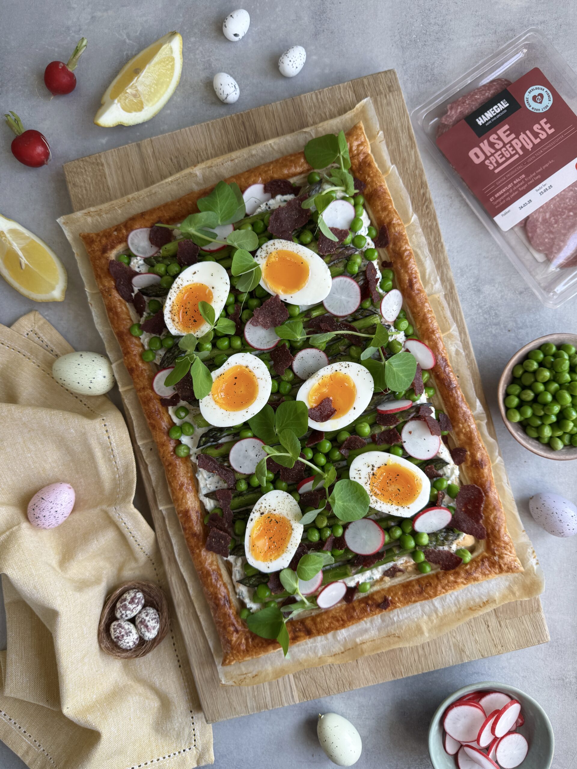 BUTTERDEJSTÆRTE M. GRØNNE ASPARGES, SMILENDE ÆG & SPRØD OKSESPEGEPØLSE