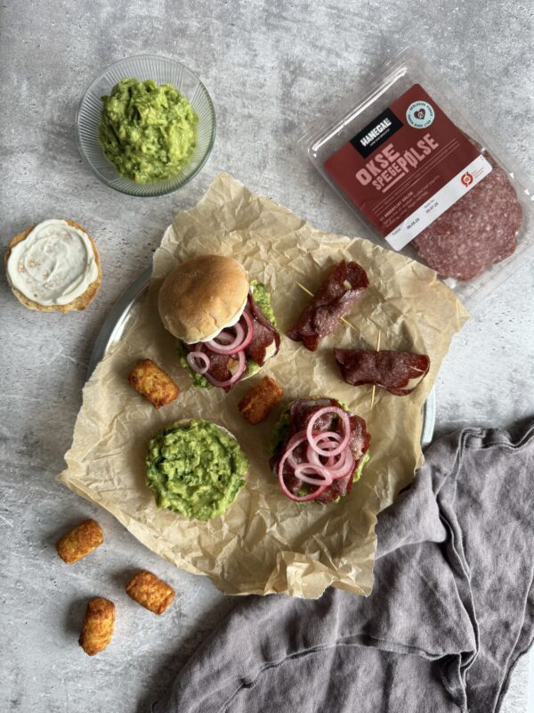 GRILLEDE SLIDERS M. CHEESY OKSESPEGEPØLSERULLER, AVOCADOCREME & SYLTEDE RØDLØG