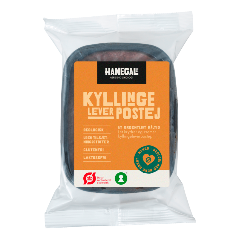 Hanegal Kyllingeleverpostej – Fast og cremet kyllingeleverpostej tilsat 30% champignon for en dyb og afrundet smag, mildt krydret med løg, muskatnød og peber. Den lette og smørbare konsistens gør den nem at smøre på rugbrød, i sandwich eller på frokosttallerkenen. Krydret diskret med løg, muskatnød og peber, er denne leverpostej et lækkert og lidt lettere alternativ til den klassiske variant – perfekt til hele familien, der ønsker god smag og økologi i hverdagen.