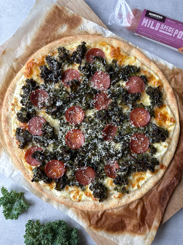 Hanegal Mild Spegepølse – Klassisk og mild med økologisk kvalitet. Smag den milde, økologiske spegepølse fra Hanegal, lavet af grisekød og let krydret for en blød og rund smagsoplevelse. Røget over bøgetræ for en subtil røget aroma, der giver pølsen et lækkert touch uden at være for kraftig. Den milde smag gør den perfekt som pålæg til både børn og voksne – på rugbrød, i sandwich eller madpakken. En pålidelig favorit til frokostbordet derhjemme eller i madpakken. Økologisk, velsmagende og lavet med omtanke – et godt valg til familien, der ønsker kvalitet og smag i hverdagen.